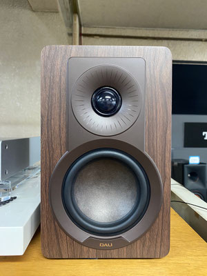 1つ目はDALI KUPID(メーカー希望小売価格¥57,200税込ペア)。5色あるのですが展示はダークウォルナットを選びました。